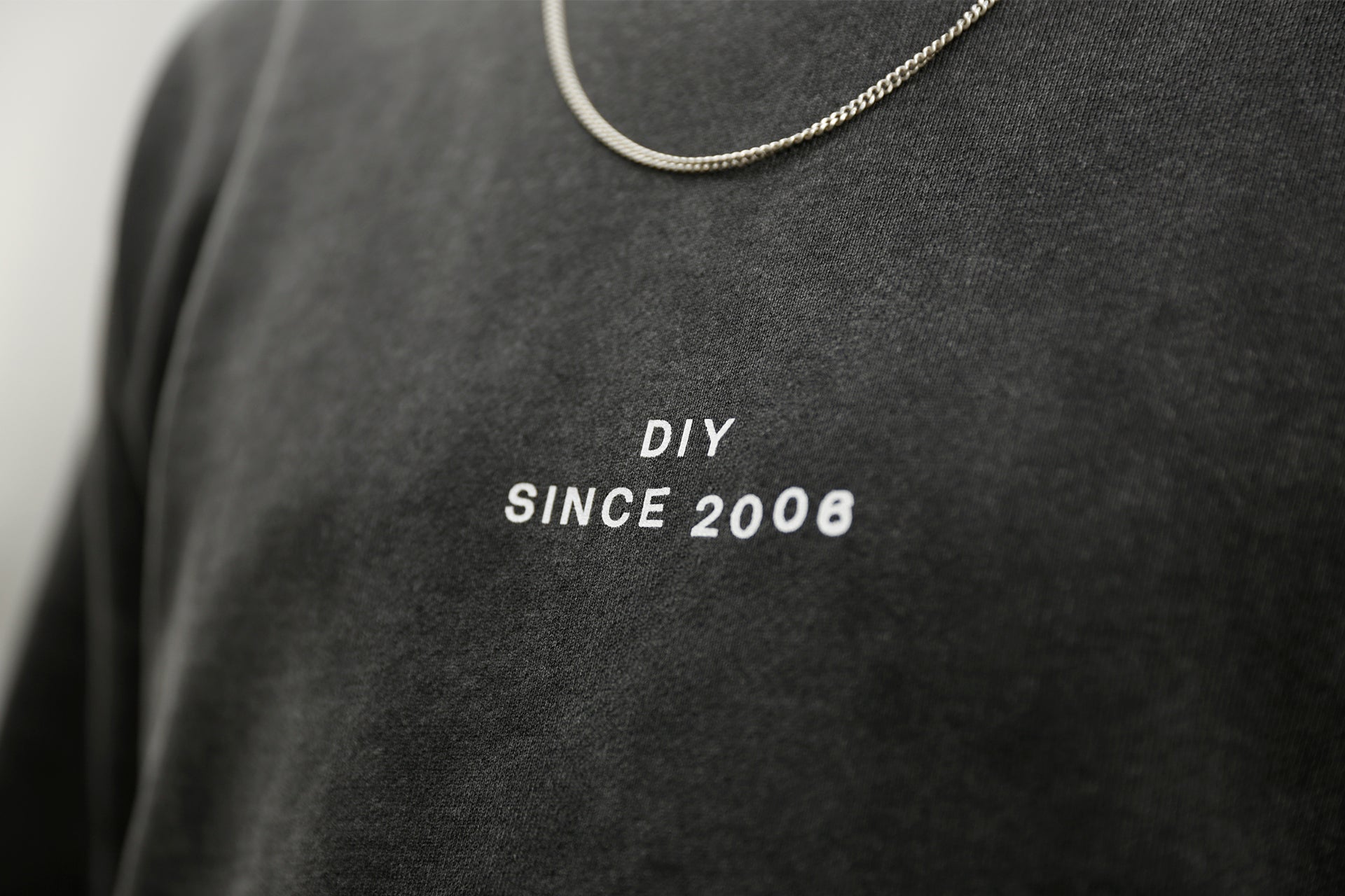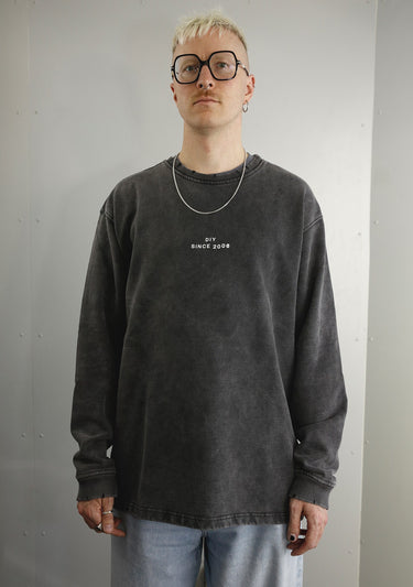 Get the new Diynamic heavyweight longsleeve in dark grey with screenprint and moonwash, for that extra edgy look.