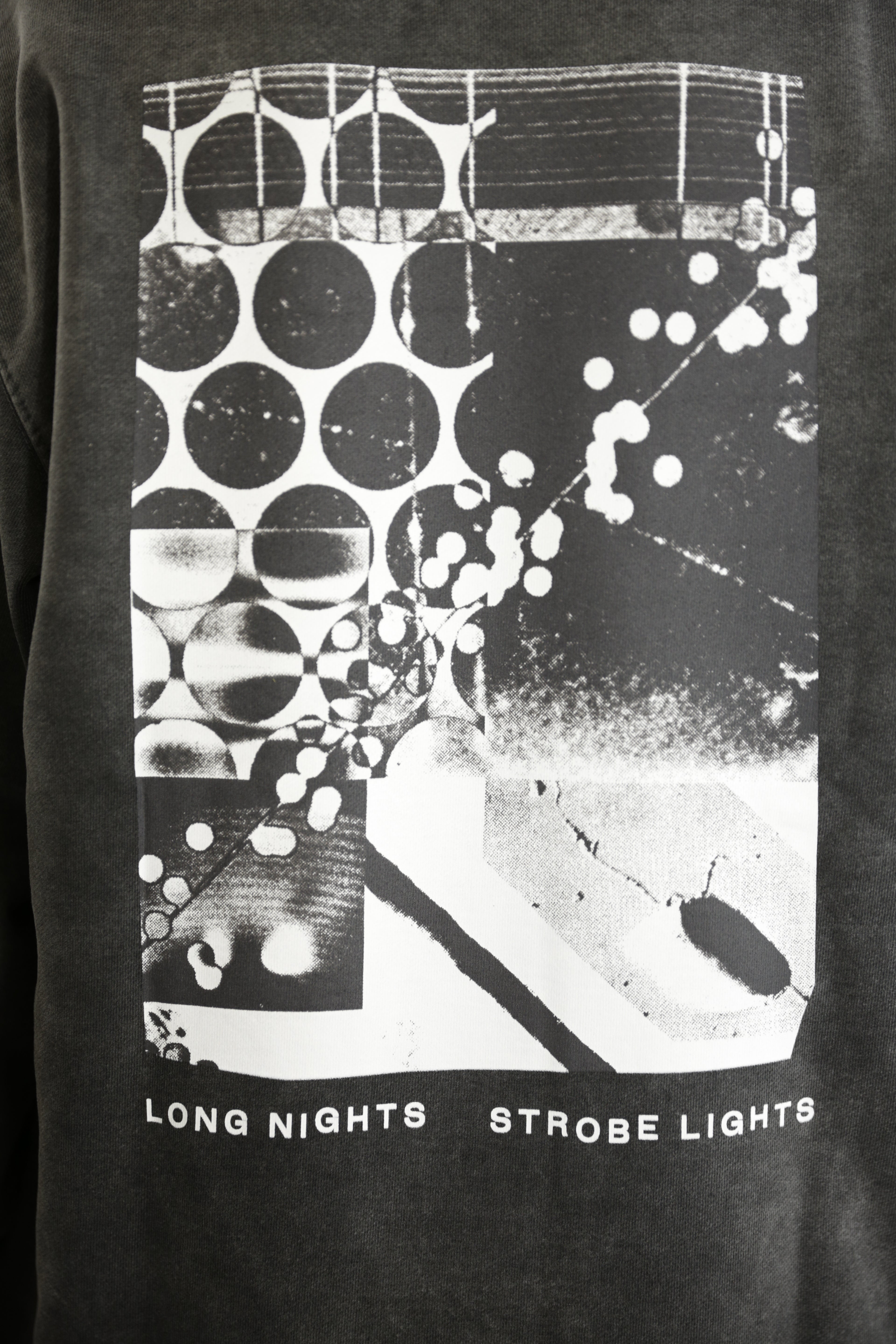 Back: "Long Nights, Strobe Lights" full back screenprint